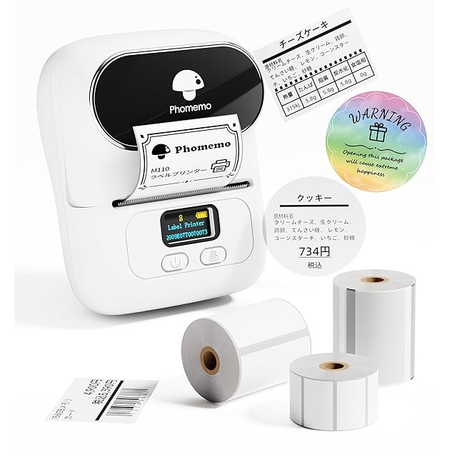 Phomemo-M110はポータブル式ラベルライターで、郵便宛名、値札、食品表示、梱包発送、アドレス、ラッピング、DIYラベル、作業、冷蔵庫収納、FBAラベル、配送ラベル、整理収納、名前ラベル、葉書等を印刷できます。このラベルライターはAndroidとiOSシステム両方のスマホのBluetooth機能とも接続できますので、生活と仕事に役に立ちます