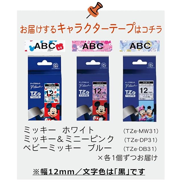 【セット内容】brother ブラザー ピータッチ PT-J100MCR キャラクターモデル レッド&テープ白9・12mm(TZe-221/TZe-231) キャラクターテープ 3種(TZe-DP31/TZe-DB31/TZe-MW31)&単四電池8本