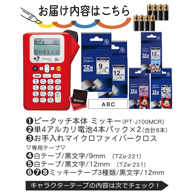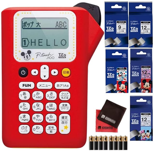 brother ブラザー ラベルプリンター ピータッチ PT-J100MCR キャラクターモデル レッド&テープ(TZe-221/TZe-231/TZe-DP31/TZe-DB31/TZe-MW31)&単四電池8本