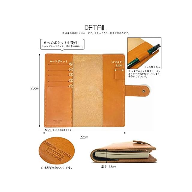 【便利なホックボタン式】味わいのあるフルベジタブルタンニングで仕上げた色鮮やかな栃木レザーの週間手帳カバー。 ホックボタン式なので、バッグの中で開いて紙が折れ曲がったりすることもありません。また5つのカードポケットとペンホルダーが付いていてとても便利です。