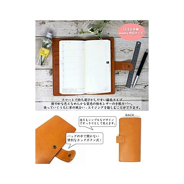 【日本の革で仕上げた贅沢な手帳カバー】職人が一点一点丁寧に仕上げたほぼ日手帳weeks対応の手帳カバーです。シンプルながら存在感のある栃木レザーを全体に使用しました。使い続けると経年変化による革の風合い(エイジング)が楽しめるのもレザーアイテムの魅力です。