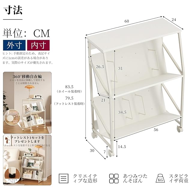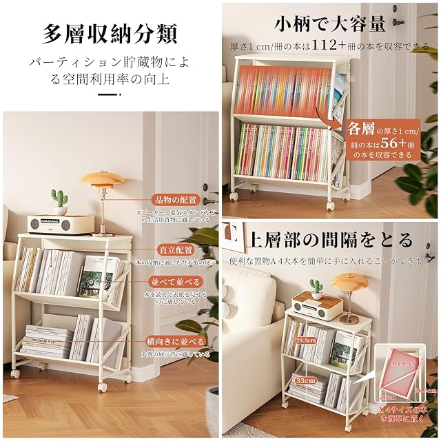 ✅【キャスター付きで移動も簡単】キャスター付きなので、本などを収納しても簡単に移動できます。 軽い力で移動でき、お掃除も簡単、キャスター付きで床も傷つきにくいです。