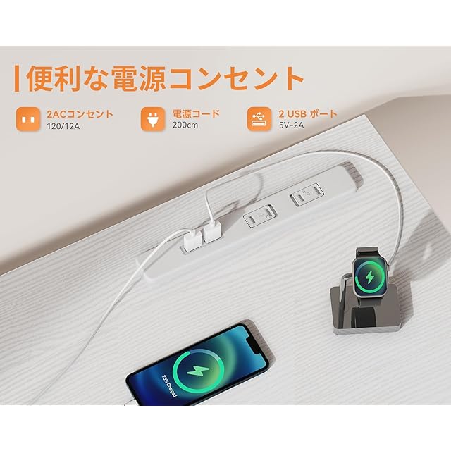 【コンセント付きデスク・ゲームと仕事両立】パソコンデスクとしてはもちろん、ゲーミングデスクとしても使用できるおしゃれなL字デスク。机には、2つのACコンセントとUSB ポート付きで、パソコンやスマホなどの充電ができて超便利です。また、ラックは間取りや利き手に合わせて左右付け替え可能。