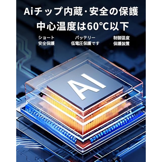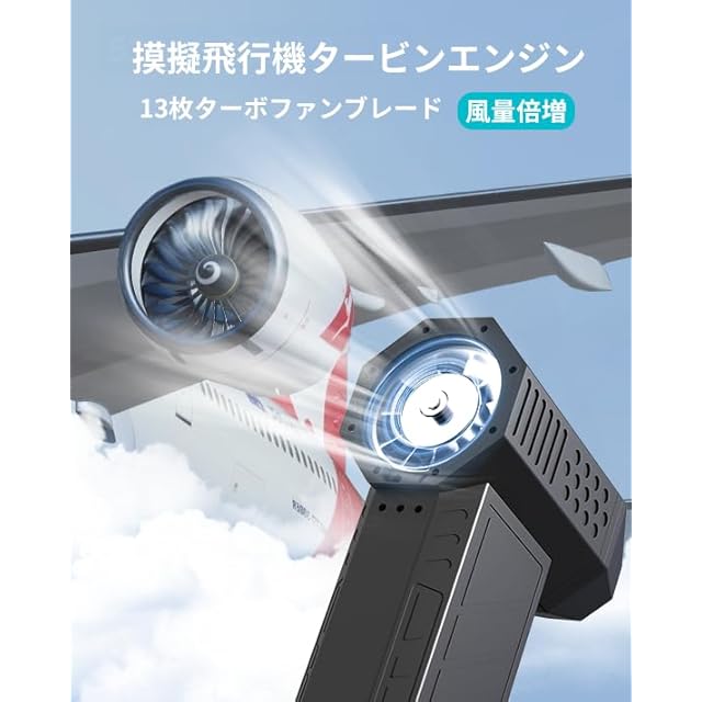 5000mAhのバッテリーを搭載し、フル充電で最大2時間の使用が可能です。中風および強風モードでは、10分後に自動的に電源が切れる安全機能が装備されています。