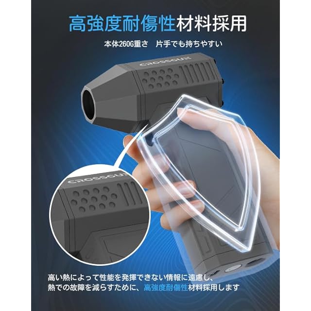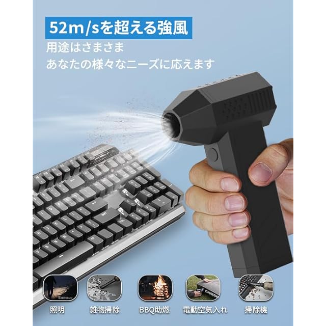 エアダスター crossgun 4段階風量調整 電動エアダスター ブロワー 洗車 小型で強力 5000mAh大容量バッテリー コードレス 充電式 エアダスター 多用途(PC 掃除/キーボード/車内/エアコン/洗車用等) ブラック 1台入り【52m/sを超える圧倒的な風速】