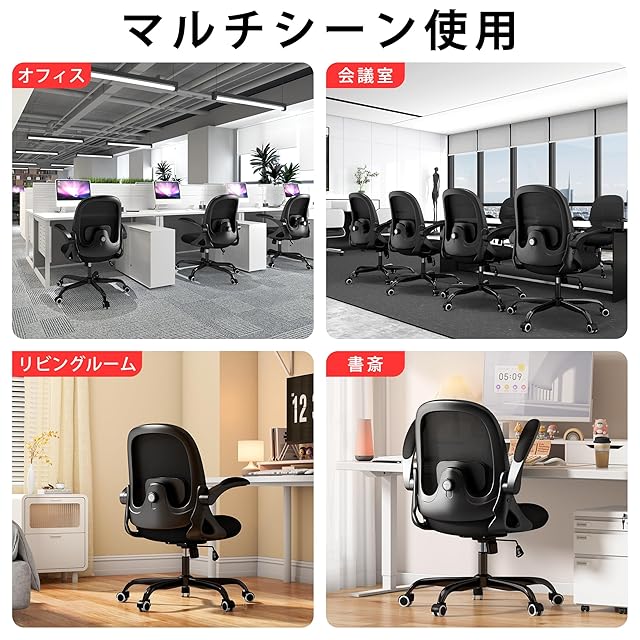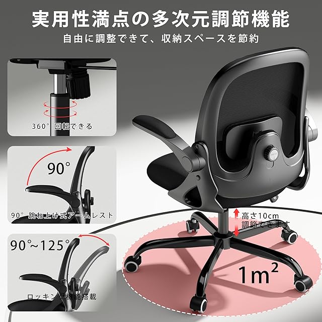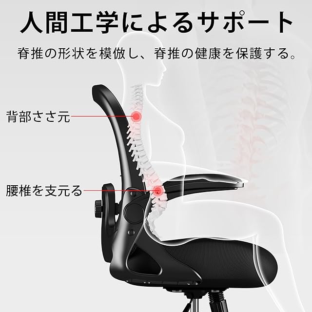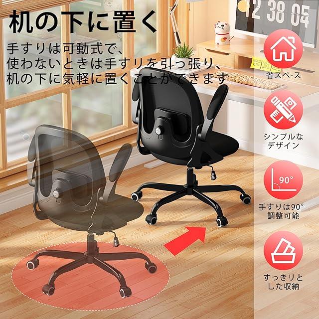 MOCHHOFU オフィスチェア デスクチェア メッシュ 跳ね上げ式アームレスト椅子 テレワークメッシュ パソコンチェア pcチェア 腰が痛くならない コンパクト 通気性強い 人間工学デザイン 腰痛対策 姿勢矯正 腰サポート背もたれ調節 在宅ワーク 自宅 プレゼント用 ブラック