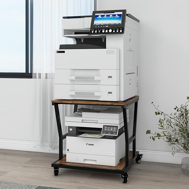 PUNCIA 2段 プリンター台 幅60cm 奥行60cm 高60cm ワゴン キャスター付き プリンターラック 収納棚 大型 コピー機 台 省スペース 机下収納 木製ラック 取り付け簡単 115kg高耐荷重 オフィス/ホーム用