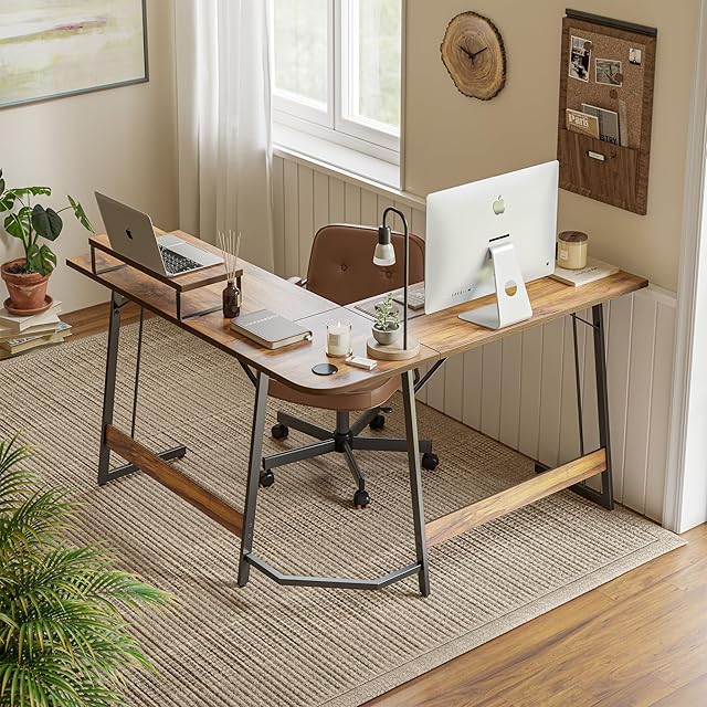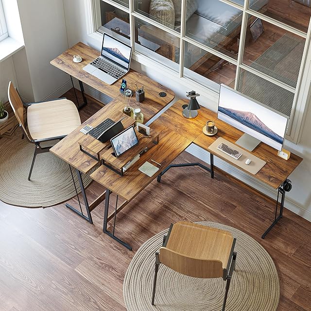 CubiCubi L字デスク 幅120cm*120cm ゲーミングデスク モニター台付き 組み立て簡単 安定性 一人暮らし テレワーク PCデスク パソコンデスク 在宅勤務 ディープブラウン