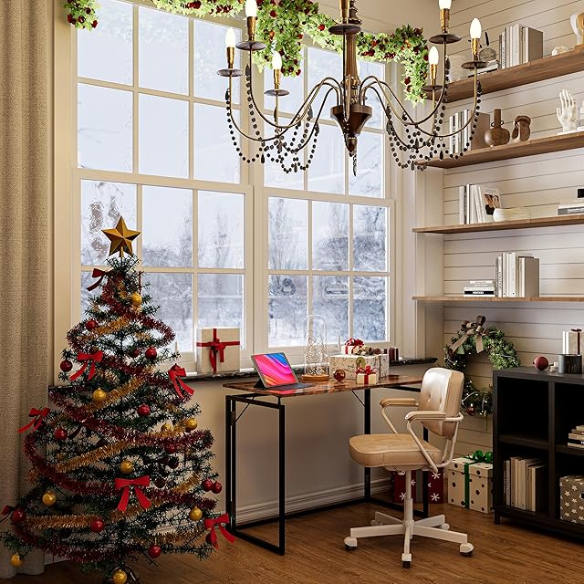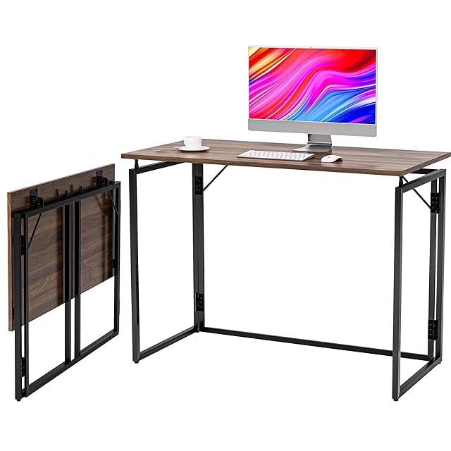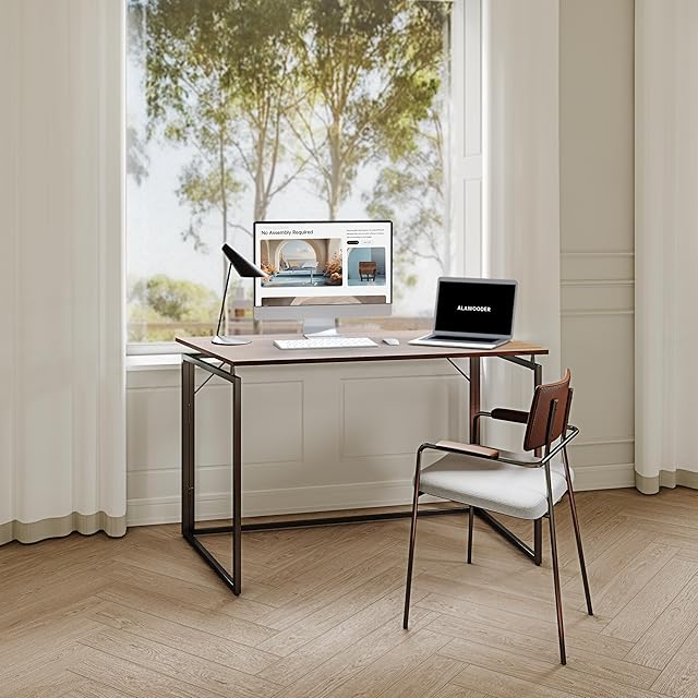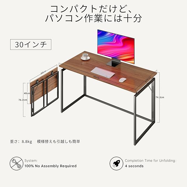 alawooder 折りたたみテーブル コンパクト デスク 完成品【組み立てあ簡単 】 耐荷重60kg 省スペース僅か6cmの薄さ オフィスワークテーブル パソコンデスク 木製 ゲーミングデスク 在宅勤務 折りたたみ 机 (ブラウン, 30インチ)