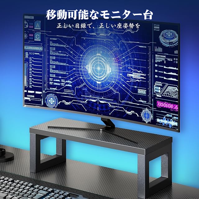 【モニター台&引き出し付きデスク】布製の引き出しで散らかった小物をスッキリ収納します。移動可能なモニター台で、天板の空間を有効活用し、正しい座姿勢を保つことができます。