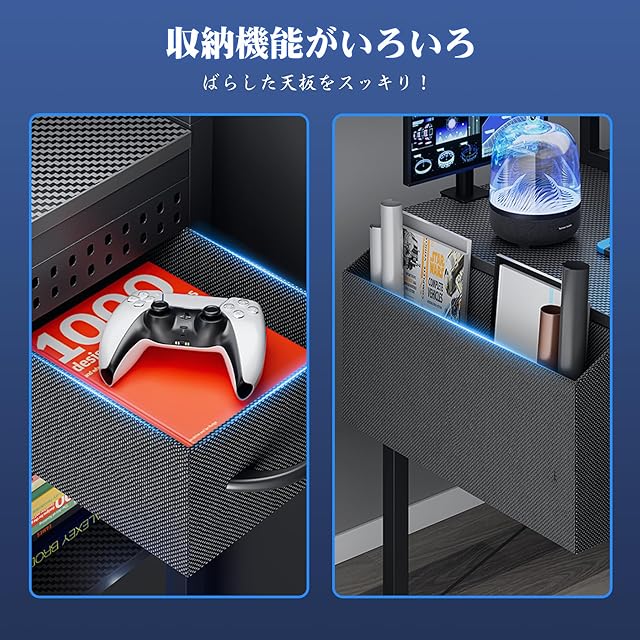 【昇降棚付き・DIY性満載のデスク】昇降可能な棚設計と、自由に組み立て可能な有孔ボードで、優れた収納力を発揮しながら、お好みに合わせてインテリアをカスタマイズできます。フックと収納ボックスも備えており、筆記用具やヘッドホンなど、必要な時にすぐに取り出せます。ゲーミングデスクやオフィスデスクとしても、十分なスペースを確保しています。