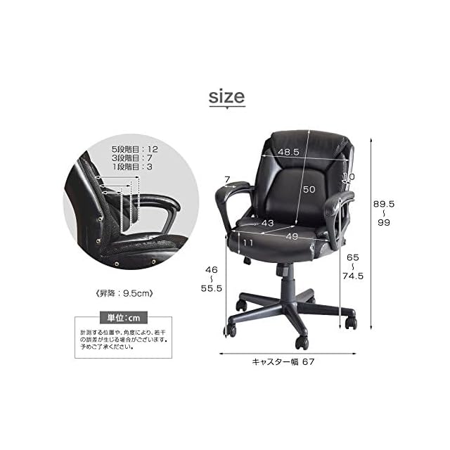 【サイズ】外寸:幅62×奥行62×高さ89.5~99cm 座面の高さ(SH):46~55.5cm 肘掛の高さ:64~74.5cm