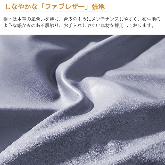【商品仕様】商品サイズ:約幅64×奥行62×高さ81.5-91.5(座面高さ約:45-51cm) 【重量】約9.7kg【静止耐荷重】約90kg 張地には本革の風合いを再現した、少し起毛感のあるやわらかな「ファブレザー」を採用。通気性が良く熱がこもりにくいので、夏はサラリと快適に、冬はヒンャリ感を感じにくいしなやかな肌さわりが魅カです。