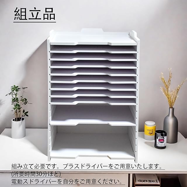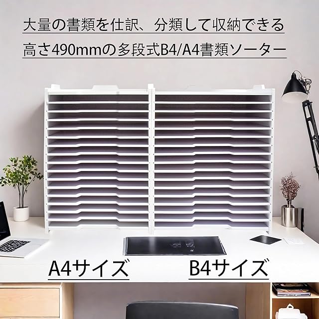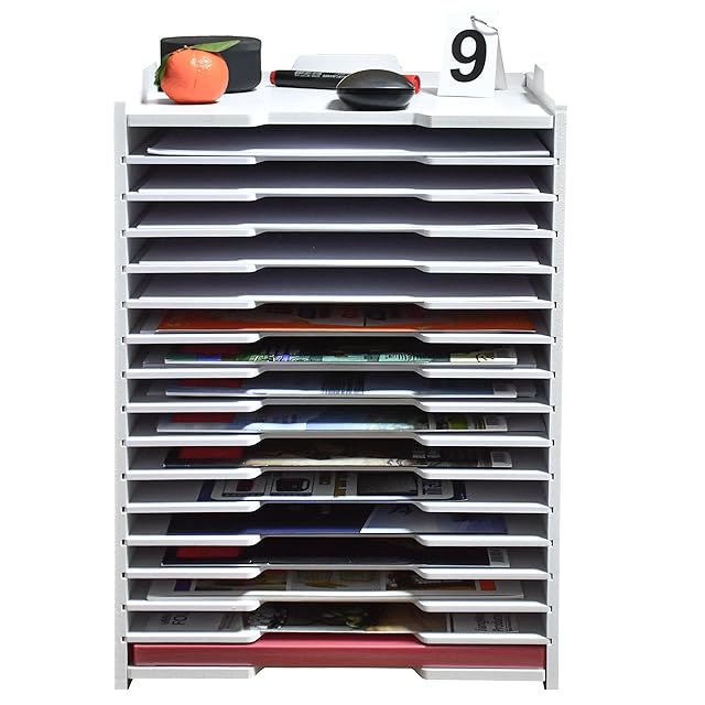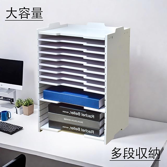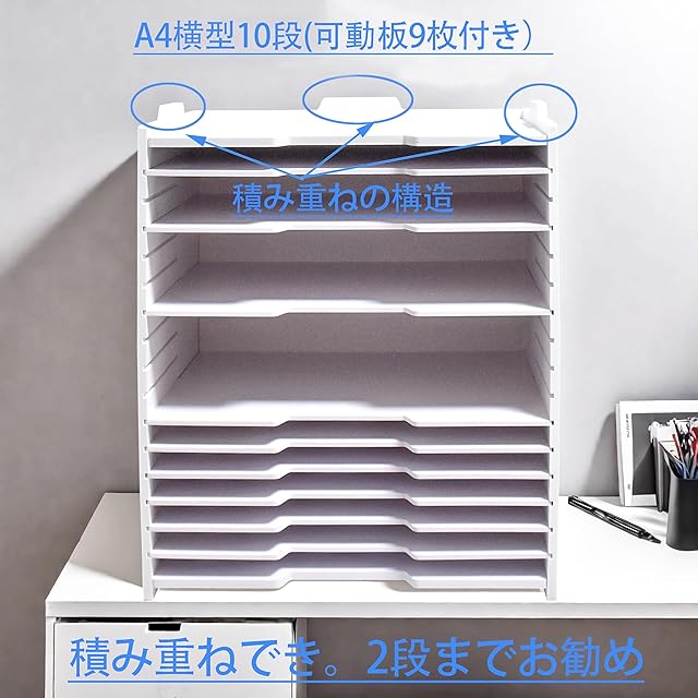 ikeem A4/B4超浅型書類棚 10段/16段用紙整理棚 ファイルラック ヨコ型/横置き a4/b4レターケース 卓上整理整頓 書類トレー インテリア アイデア 机上 机の上 書類分類 積み重ね対応 組立簡単 スタッキングシェルフ 大容量 頑丈 シンプルでおしゃれ 白/ホワイト(A4横型16段)