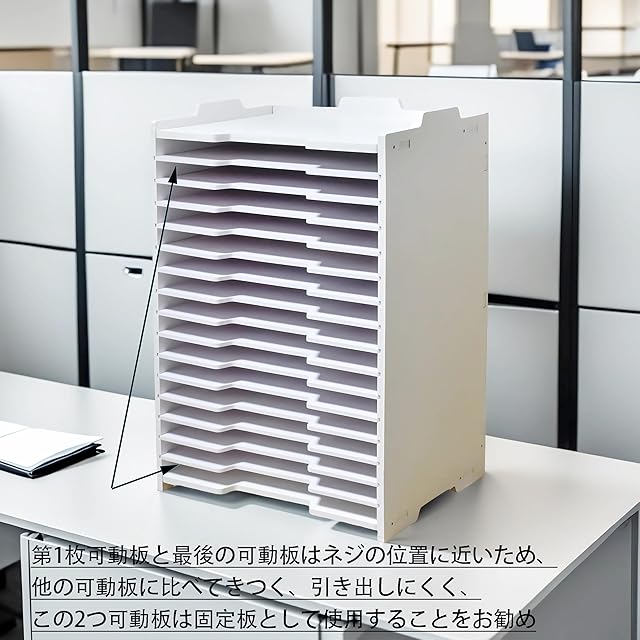 ▲究極に細かく仕分けられる16段/10段書類ケ一スです。ここまで細かく仕分けできるトレ一は他にない!オフィスなどで多種類の書類を分類するのに最適です。書類の量によって調節も可能なのでスペ一スを無駄なく極限まで利用できます。