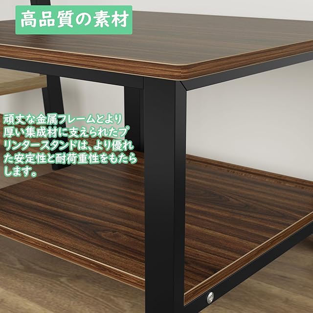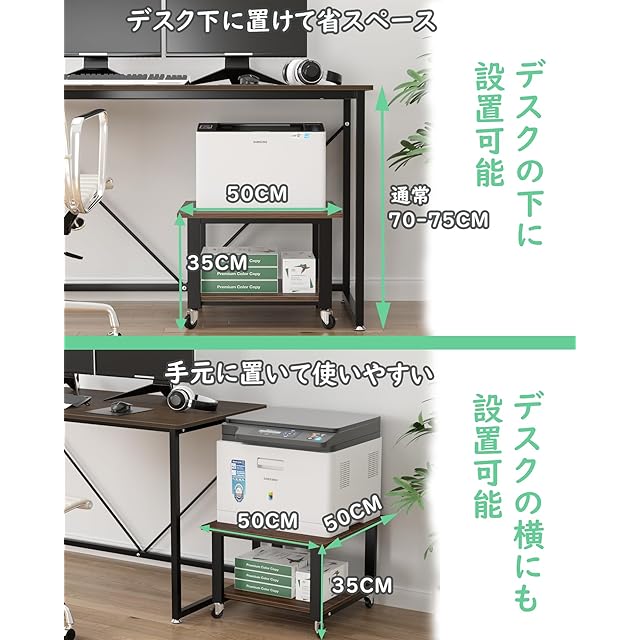 【キャスター付移動便利+ストッパー付固定可】キャスター付き、プリンターをメンテンナンスする時や、位置を変える時に、移動は楽になります。ストッパーを設置するキャスターなので固定でき、滑る心配はありません。その上、必要に応じて、キャスターを組立しないと、机上にも設置して使用できます。