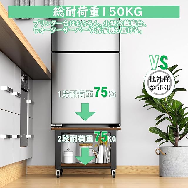 【多用途ラック】幅50x奥行き50cmの広く天板で、1段/2段耐荷重75kgの超しっかり品質!プリンター台だけでなく、トースターラックやコピー機台などとしても楽々!2段式のラックで、下段にはコピー用紙などを置くと便利になります。