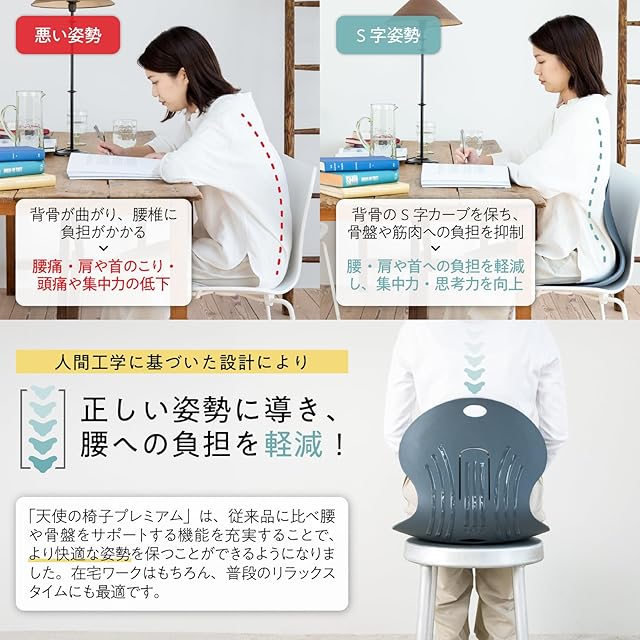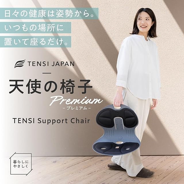 TENSI JAPAN 美姿勢サポート 人間工学設計 天使の椅子プレミアム(ブラック)