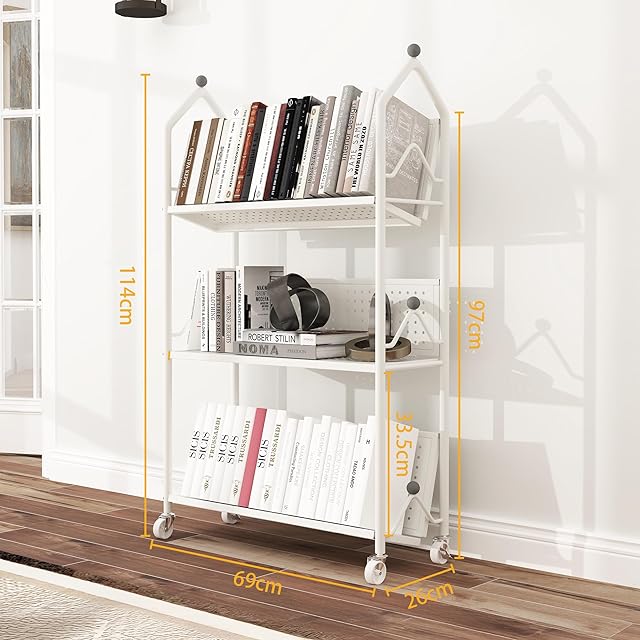 省スペースの本棚:コンパクトな設計で、本棚は最小限の床面積を占め、多様な小さな領域を最大限に活用します。3段の本棚は、様々なアイテムを整理するのに十分なスペースを持っています。本の収納としてだけでなく、コレクションやアルバム、鉢植えなどの宝物コーナーとしてもお使いいただけます
