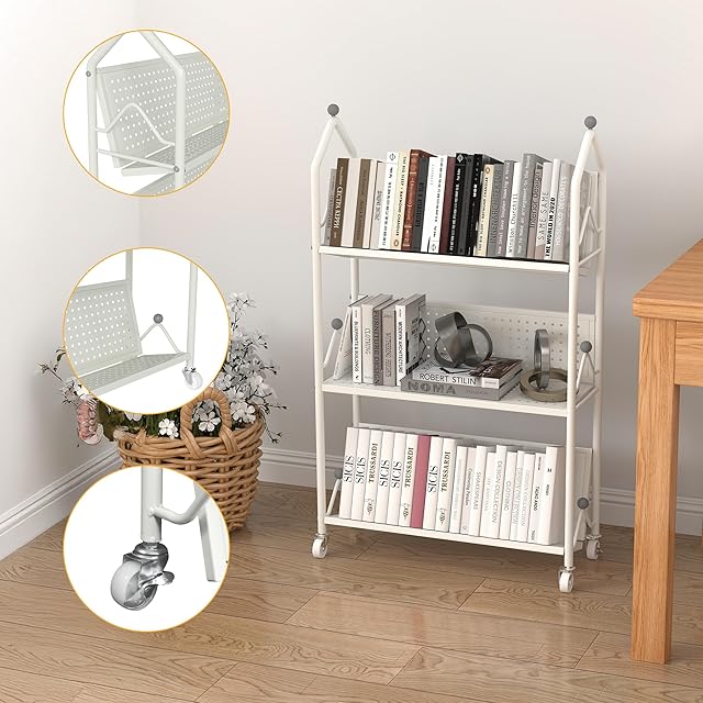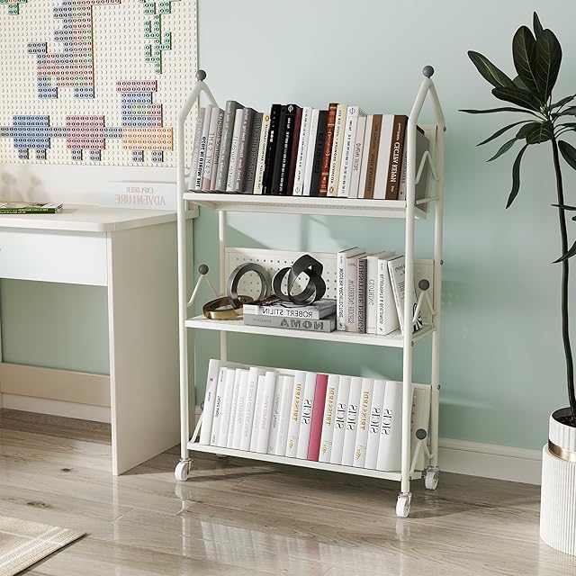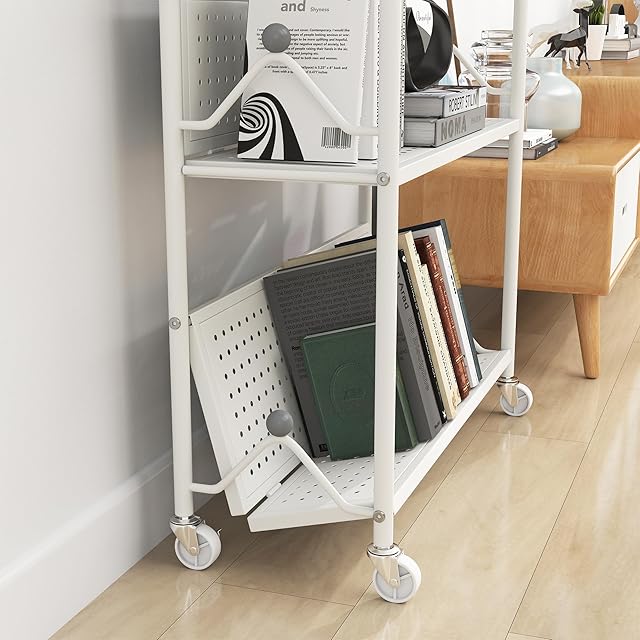 GOOFCXO キャスター付き ファイルワゴン 3段 ホワイト ブックシェルフ 大容量 スリム 教科書 収納 省スペース キャスター付き本棚 斜め棚 本 書類 収納 移動式本棚 多用途 物品棚