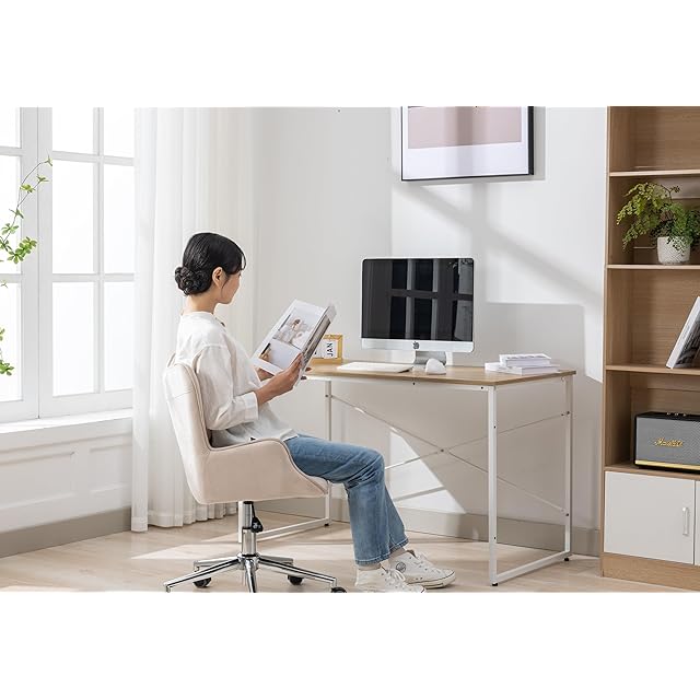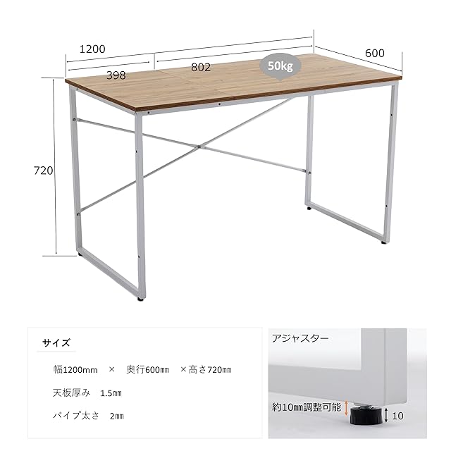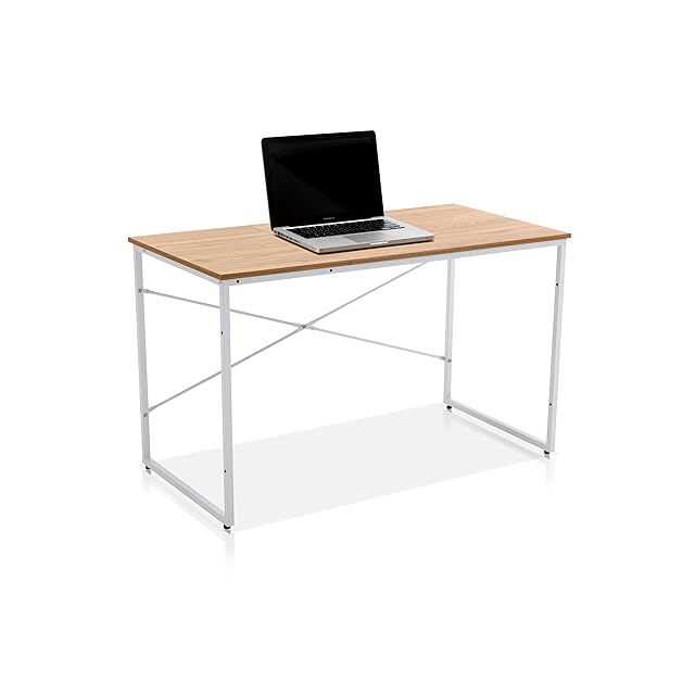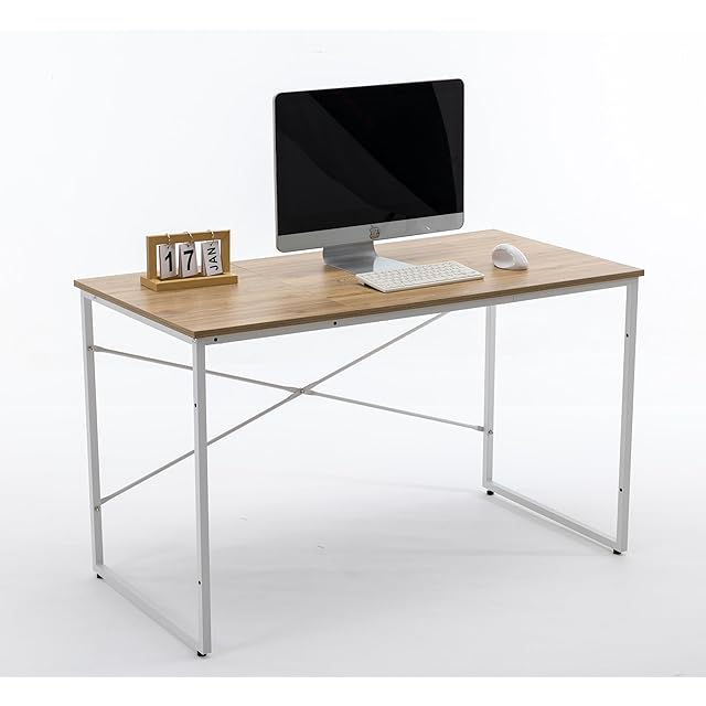 SYALEN デスク パソコンデスク テレワークデスク 高さ72cm オフィスデスク PCデスク シンプルデスク モニターアーム取付対応 l字デスク拡張可能 ナチュラルウッド/白 SLDK-06NA (幅120CM×奥行60CM×高さ72CM)