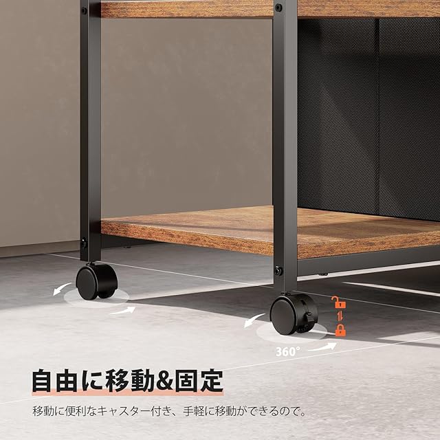 【移動便利】引き出しの取材がオックスフォード布と不織布なので、サイドワゴン全体がとても軽く、移働に便利なキャスターがついています。手軽に移動ができますので、レイアウトの変更や掃除の際も簡単に移動ができます。また、ストッパーが付いているので、引出しを開ける度にワゴンが一緒に動いてしまったり、転倒したりすることはありません。