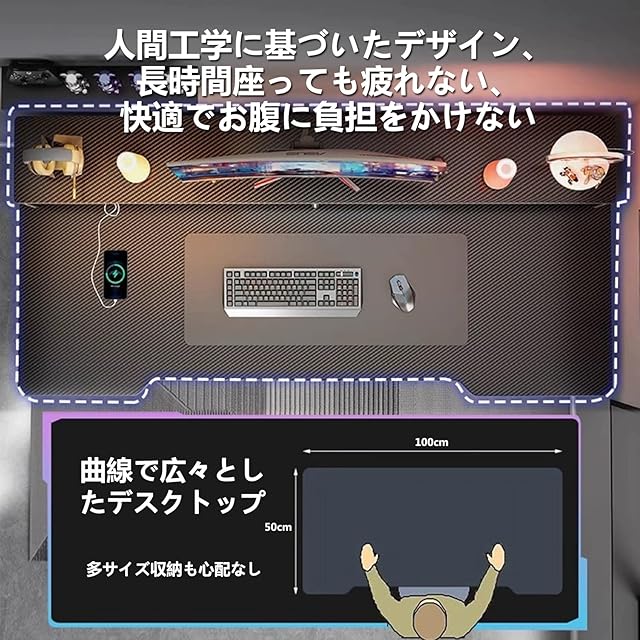 【広々とした作業スペース】:作業スペースが広いため、学生や仕事をする方に最適です。大型のディスプレイやキーボードを置いても教科書や資料を広げて使うことができます。こちらのpcデスクは実用性が高くて色々なシーンに合わせて使えます。在宅勤務、パソコン作業用、ゲームプレイ、 化粧台、勉強机、作業台としてもご利用いただけます。パソコンデスクとしてもテレワーク時に活躍します!学生や仕事をする方にとって、快適な作業環境を提供する素晴らしいプレゼントです。