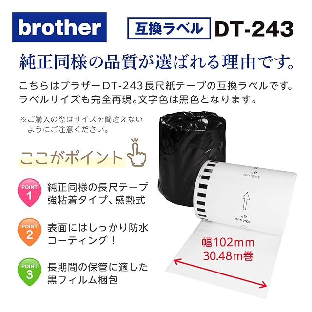 【商品内容】ブラザー DTテープ DT-243(DK-1243)互換ラベル 感熱紙タイプ 防水コーティング。