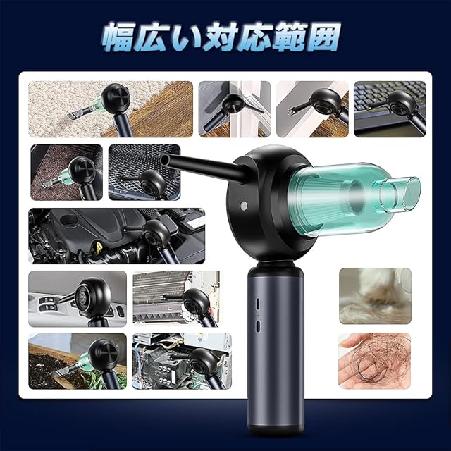 【350°の広角度調整】350°の広角度を提供されて、どんな角度の隅までのホコリでも簡単に掃除できます。逆さ噴射できないなど痛みも解決できます。コンパクトなエアダスター兼掃除機としてさまざまな場所の掃除に役立ちます。