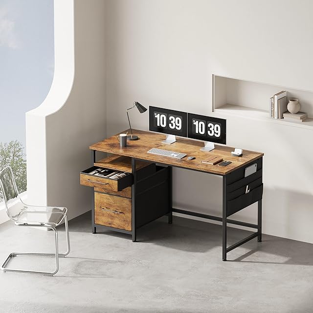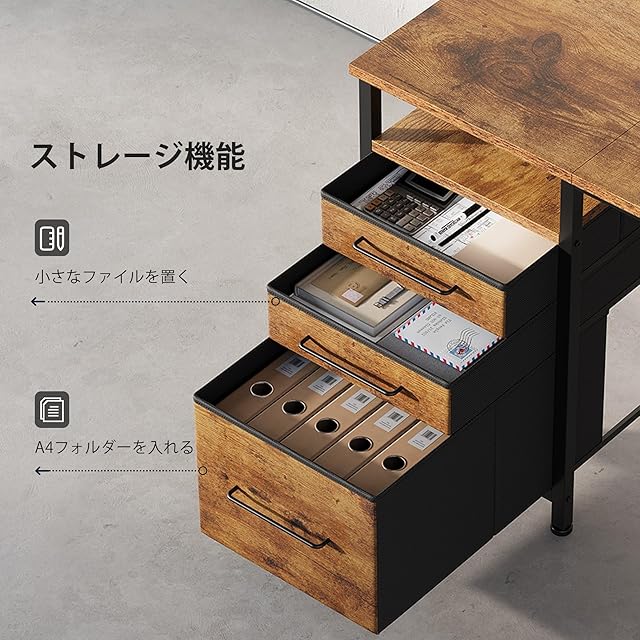 Maihail 机 pcデスク パソコンデスク 幅120cm×奥行45cm 勉強机 学習机 左右入替可 布製引き出し付き ゲーミングデスク パソコンテーブル 収納 ビンテージ