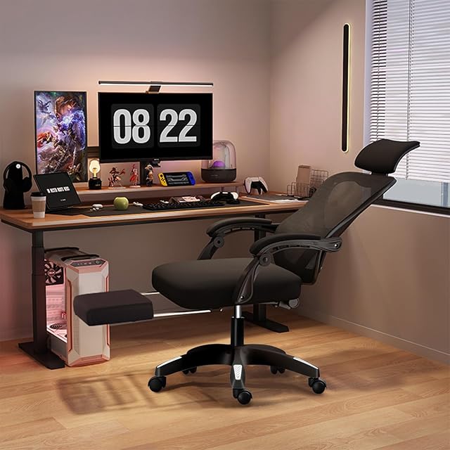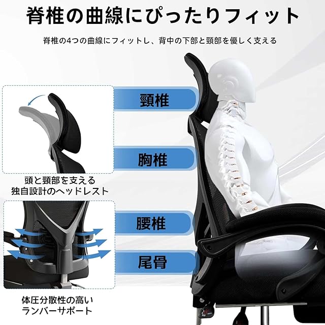 EdoErgo オフィスチェア デスクチェア 椅子 テレワーク 疲れない リクライニング ロッキング チェア ランバーサポート 通気性メッシュ PCチェア 人間工学 高反発クッション キャスター付き 収納 座椅子 人気 おしゃれ H-WY20 (黑網+黑枠+黑足)