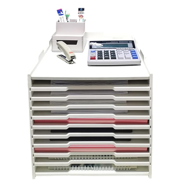 A3書類ラック a3レターケース デスクトレー 書類ホルダー 書類トレー 卓上整理整頓 高さ調節可能 横型 縦型 6段/9段/10段(浅深対応) 小物収納 積み重ね 頑丈 おしゃれ 組立簡単 (縦型10段,ホワイト)