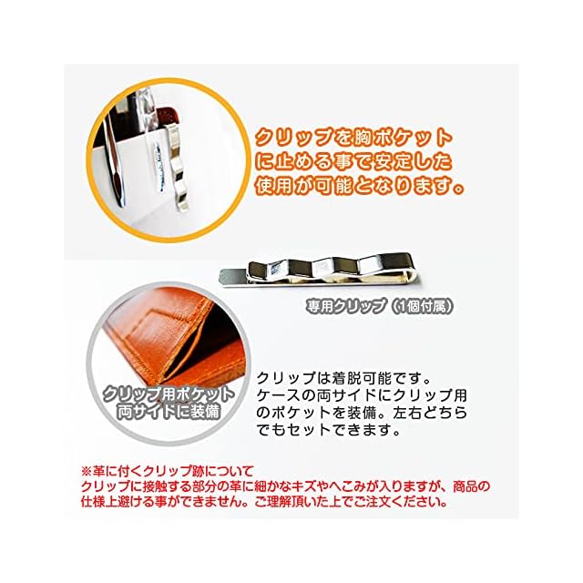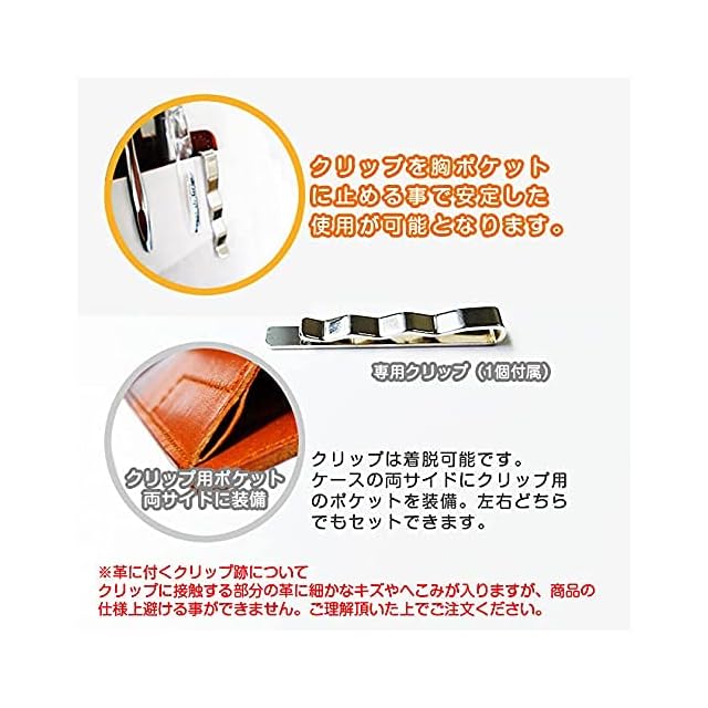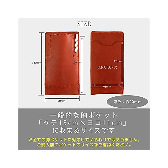 サイズ:縦 13cm x 横 7cm x 厚み 2cm (最大)※およそ縦120mmx横80mm以上の大きさの胸ポケットに対応しています。