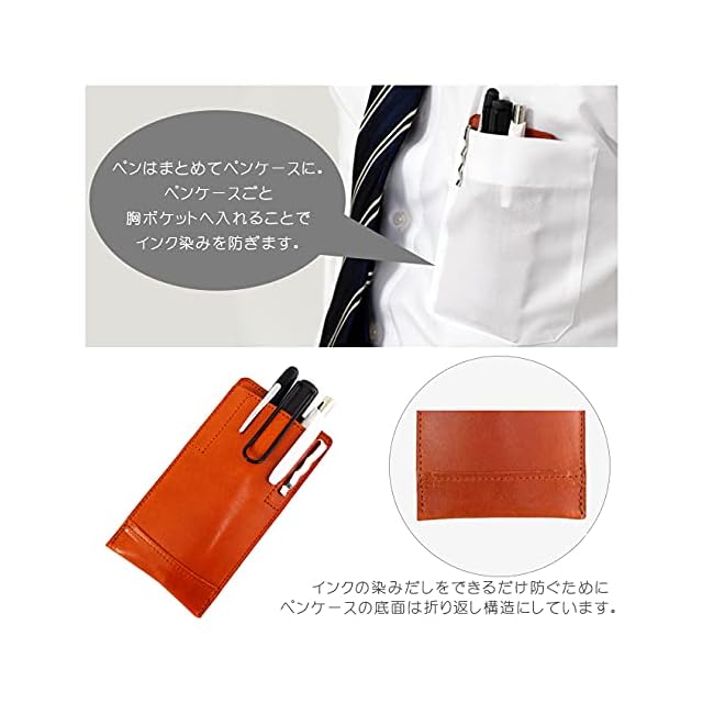 [i-story] 名刺入れ付き 胸ポケット用ペンケース 【栃木レザー】 (ブラウン)