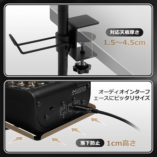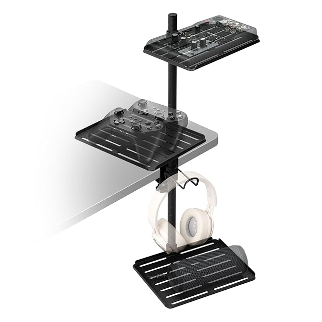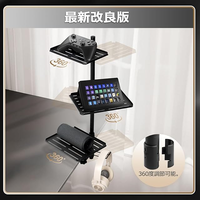 Kotesoto オーディオインターフェース スタンド クランプ式 オーディオインターフェース ラック スピーカー台 スタンド 机上ラック スピーカースタンド クランプ 縦に整理 デスク 収納 オーディオインターフェイス スタンド 360度調節可能 3段階 デスク周り収納ラック クランプ 棚 ヘッドホン/コントローラー/オーディオインターフェース収納 幅広く機種に対応 穴あけ不要