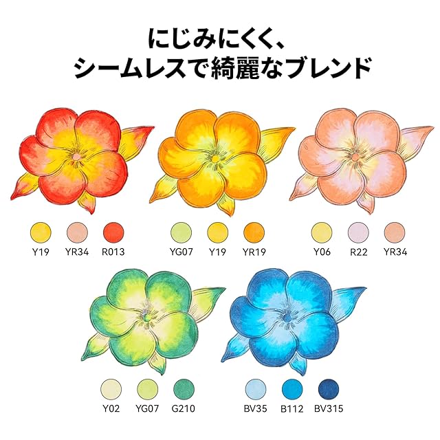 「鮮やかな36カラー」イラストを描く時よく使う基本の24色に12色を追加し、36カラーだけでもグラデーションを作ることが可能。ブレンダーペン1本付き、グラデーションやぼかしたりするときにオススメです。