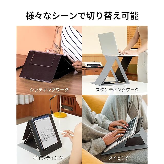 MOFT Z【公式直営店】ノートパソコンスタンド ノートPCスタンド PCデスクワークに対応 お手軽にスタンディングワークを実現 テレワークや在宅勤務に最適 折りたたみ 収納時の薄さ1.5cm 耐重10kg 軽量890g 多角度調節 簡単に切替可能 17インチまで対応(ブラック)