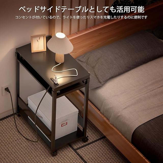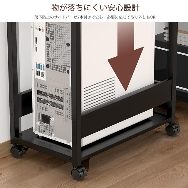 【多機能】2口コンセント付きで配線がすっきり整理可能、プリンターなどの使用も便利です。昇降式構造(75~107cm無段階調節)を採用し、嵌入するデザインで安定した使用感を実現します。デスク下収納としても、サイドテーブルとしても、ミニ収納ワゴンとしても活用可能。ストッパキャスター付き移動式とアジャスター付き固定式2機能付き。サイド板が2枚付き、置き物を転倒や落下を防ぐことができます(サイド板は取り外しできます)。
