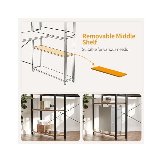 【ラック付き】ラック付いており、収納力は満載です!卓上の棚も卓下の棚も二つ設置する方法があり、ニーズに応じて様々な使用場面に適応します。