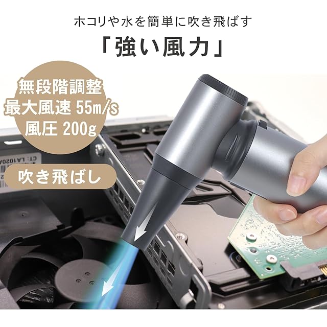 ✅【無段階の風力調節が可能】風量は屋内外さまざまな場所で使えてお好みの強さに調整できる無段階調整タイプです。付属のアタッチメントを活用して車内掃除、洗車後の水とばし、火おこし、衣類の花粉取り、浮き輪の空気入れ、パソコン掃除、カメラの埃取り等にご利用ください。