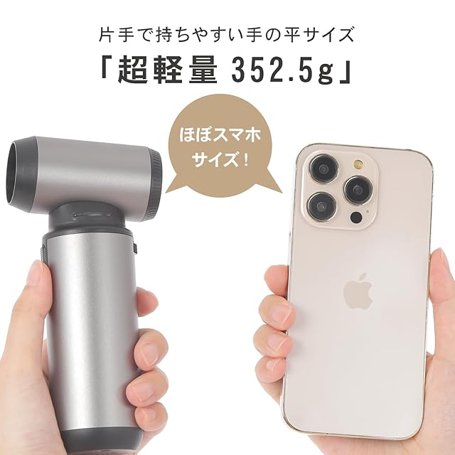 ✅【軽量かつコンパクト】約352.5gと軽量で、片手でも持ちやすく、強力噴射でホコリを楽々吹き飛ばせるエアダスターです。収納ポーチ付きなので持ち運びにも便利な使いやすさにこだわっており、小型で軽量ながらパワフルのため、掃除やアウトドアまで大活躍なエアダスターです。