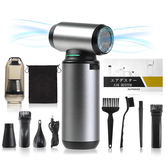 日本企業販売ブランド DOT MAKE【2in1 エアダスター&ハンディクリーナー】エアダスター 電動エアダスター ブロワー ハンディクリーナー 2 in 1【日本国内保証付き 小型 軽量 352.5g 無段階風力調整 130,000RPM 55m/s 5種類ノズル付き USB-C充電式 多用途(PC 掃除/キーボード/車内/洗車/エアコン/花粉 等) 【収納ポーチ付き】 SP-AIR150
