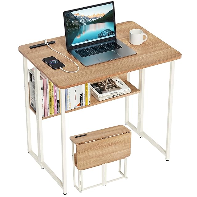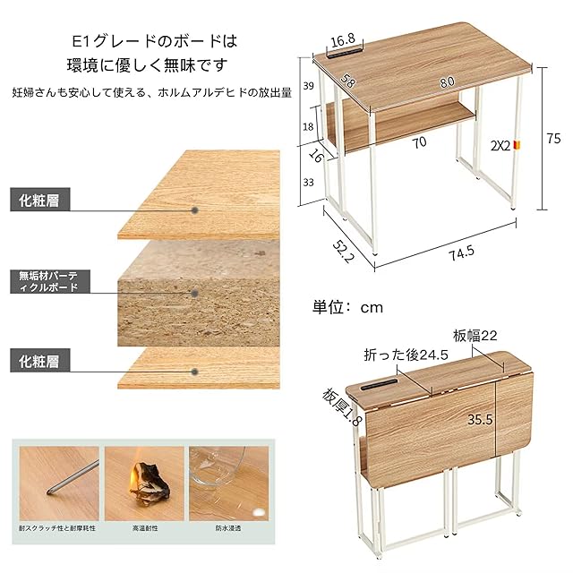 折りたたみデスク 多機能 折りたたみ テーブル 省スペース机 折り畳みコンパクデスク (80cm, 木の色)