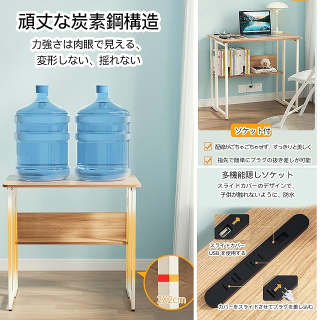 【多機能折りたたみデスク】折りたたみが簡単で、折りたたんで立つこともでき、寝室、リビングルーム、キッチン、オフィス、その他の場所に適した室内装飾用の収納室、ドレッサー、またはキッチンサイドテーブルとして使用でき、デスクトップはそのままですパソコンの電源やスマートフォンの充電用のソケットとUSBポートがあります。