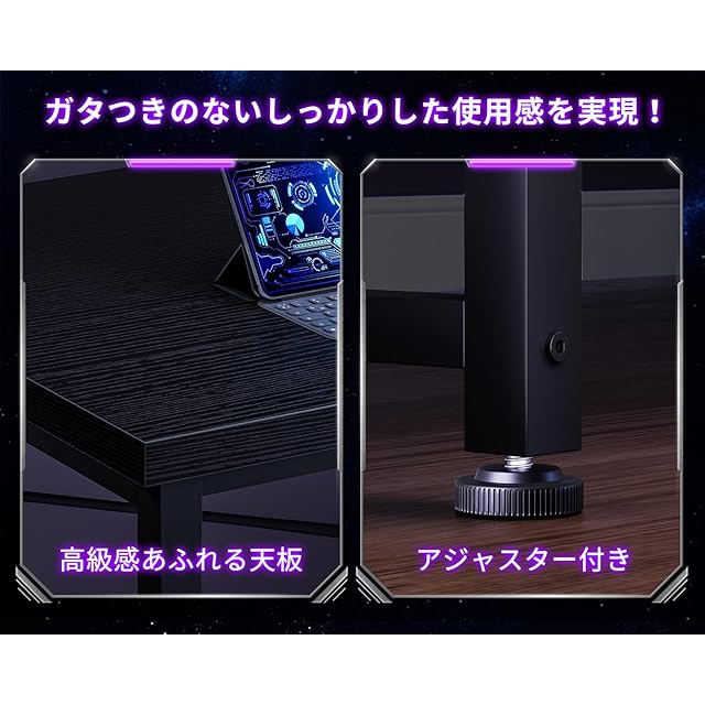 【頑丈設計・安定性UP】l字デスクの天板耐荷重は約50kg、パソコンや周辺機器を安心に設置できます。天板裏の補強パイプ・横揺れを防ぐクロス補強金具・脚先のアジャスター・強度と耐久性の高いスチールフレームで、ガタつきのないしっかりした使用感を実現しました。