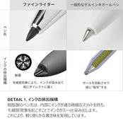 「ファインライター」の特長:毛細管現象による軽く滑らかな書き心地 / 表現力の幅を広げる、しなやかで砲弾形状のペン先