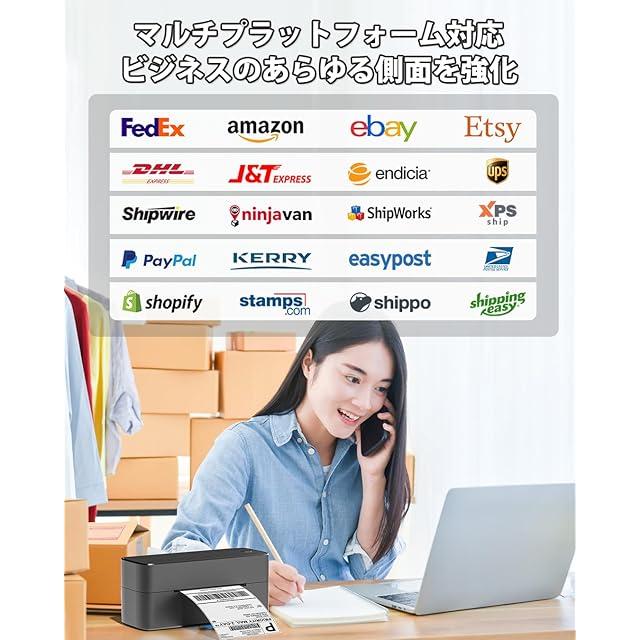 【多機能、多目的】サーマルプリンターは、eBay、Etsy、Shopify、DHL、FedExなど、ほとんどのプラットフォームと互換性があります。100x150のラベルサイズに対応しており、配送ラベル、FBAおよびFNSKUラベルの印刷だけでなく、日本郵便や倉庫、宅配便、配達、価格、バーコード、ギフトラベルなど、さまざまな目的にも使用でき、迅速かつ効率的なラベル印刷を実現します。