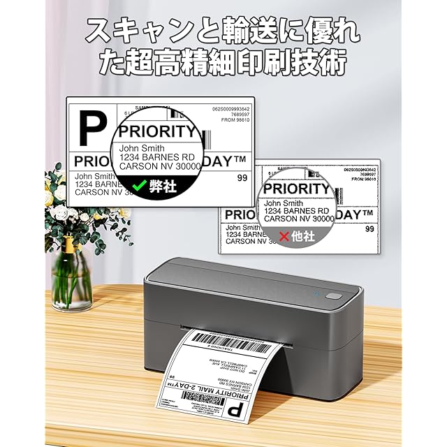 Pesuza 241BT クリックポストプリンター ラベルプリンター 中小企業用 感熱ラベルライター 日本郵便 クリックポスト Bluetooth/USB接続 100x150mm(A6)バーコードプリンタ 日本郵便や物流会社(Ebay、Shopifyなど)との互換性 出荷や倉庫管理、商品バーコード、配達、食品表示等物流関連に適用 黒文字 幅25-126mm(グレー)