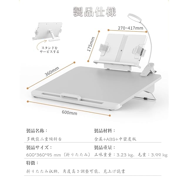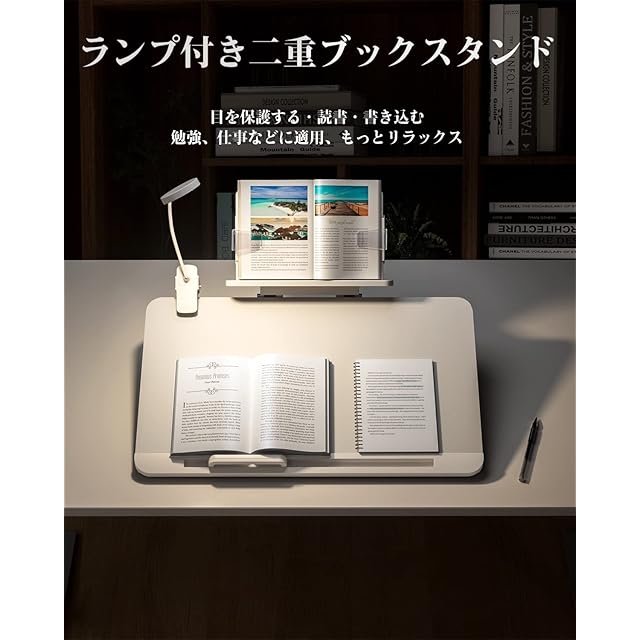 【二重層ブックスタンド】大型傾斜台のアップグレードされた、子供の勉強に欠かせない良い手伝いです。2層デザインで、そして取り外し可能で、ブックスタンドとライディングボードに分けて単独で使用することができます。そして、目を守るライトが付いていて、視力を保護して、もっと便利です。
