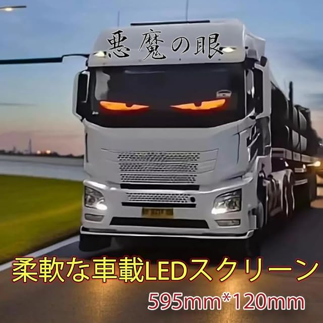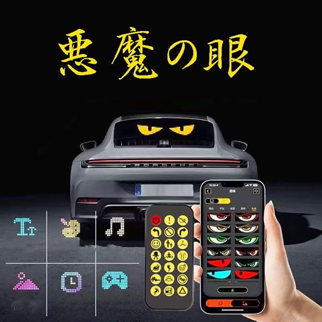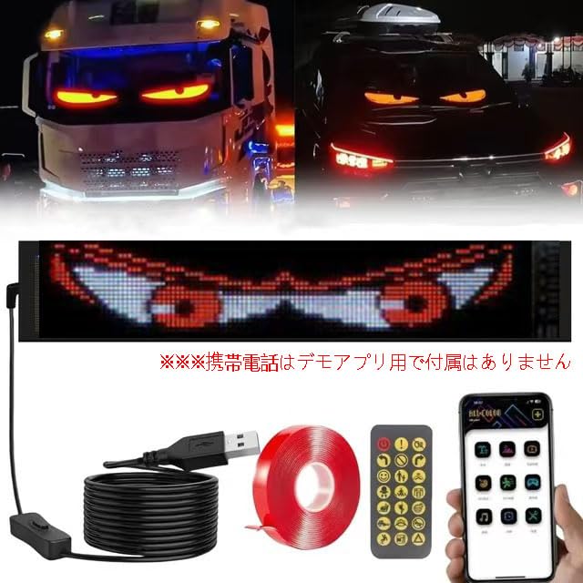 LED看板 デビルアイ 悪魔の目 車載 スクリーン 悪魔の眼 店舗看板 5V USB 車用アプリ制御 LED電光掲示板 フレキシブルスクリーン 車の掲示板 フレキシブル 小型スクロール テキスト パターン アニメーション プログラム可能な柔軟な車用 (1枚 12X59.5cm)
